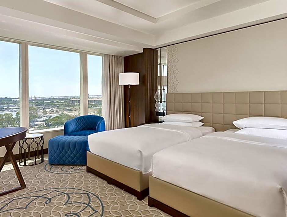 2 Twin Beds with Club Access is 344 square feet and includes 2 single beds 80-130 width plus desk, hairdryer, tea and coffee making facilities , and slippers.